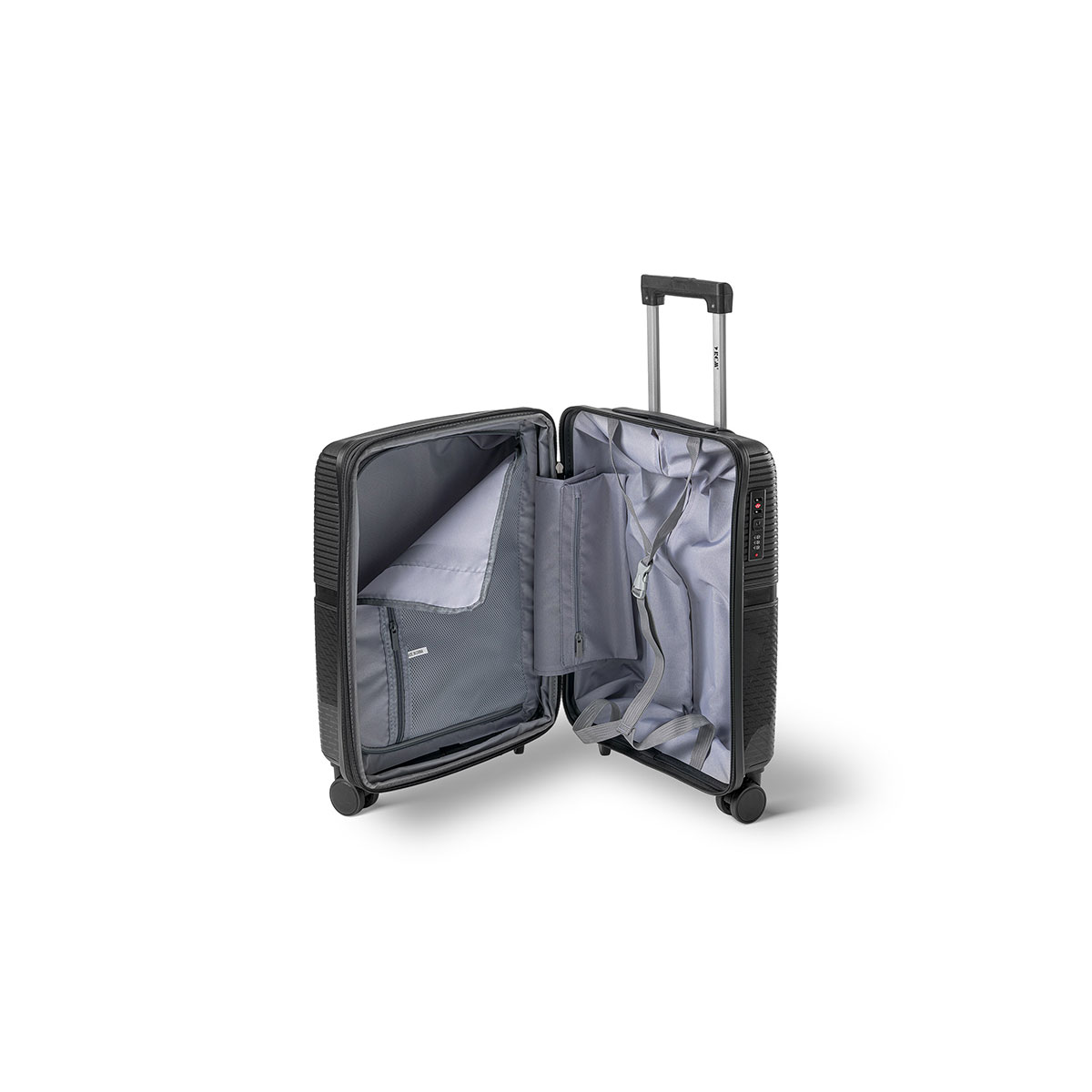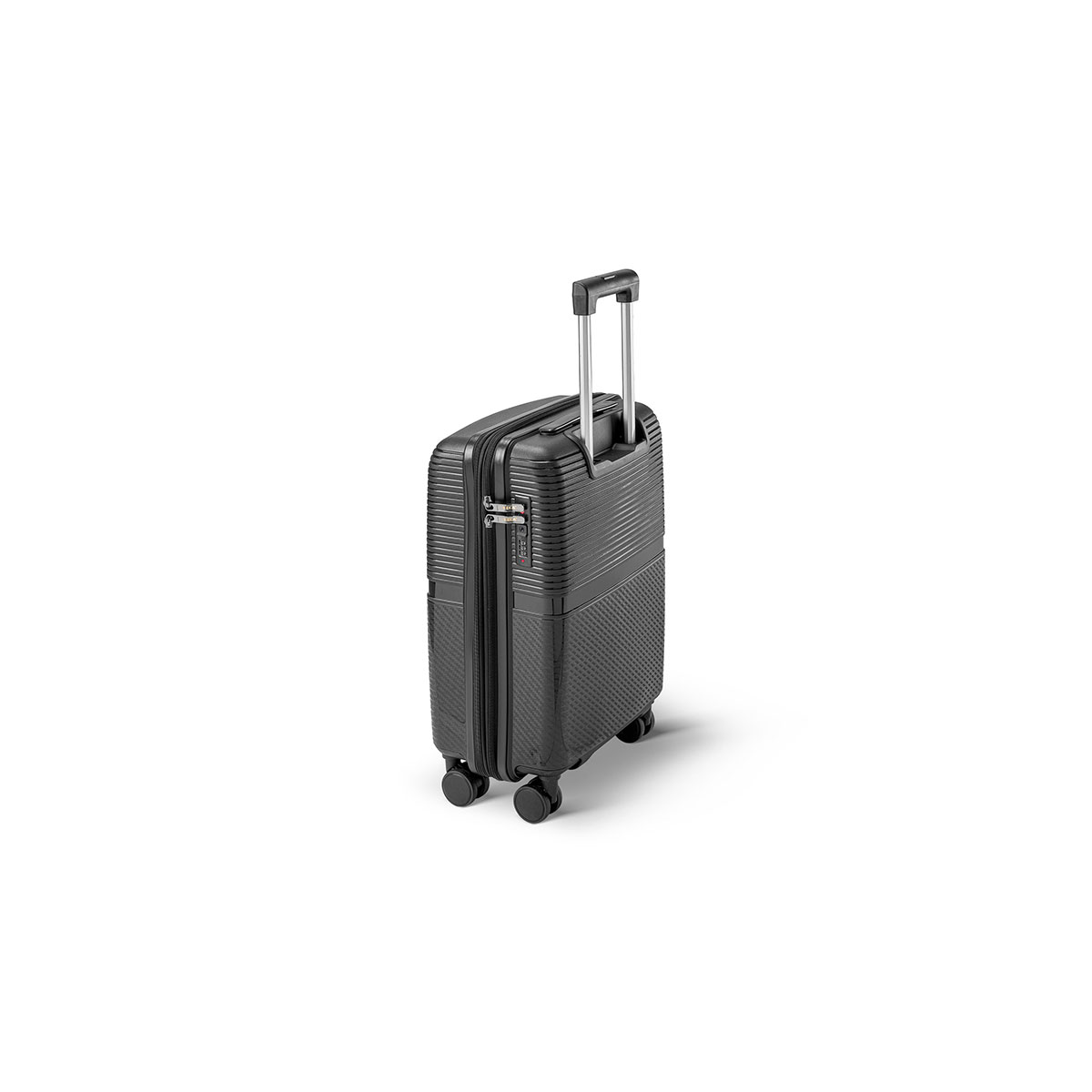 Βαλίτσα καμπίνας RCM 1092-20 Black. Σκληρή βαλίτσα πολυπροπυλένιο (PP), με τέσσερα διπλά ροδάκια, φερμουάρ επέκτασης όγκου και TSA lock. Χωρητικότητας 44LT και βάρος 2,7Kg. Εξαιρετικής ποιότητας και ανθεκτικότητας υλικό.